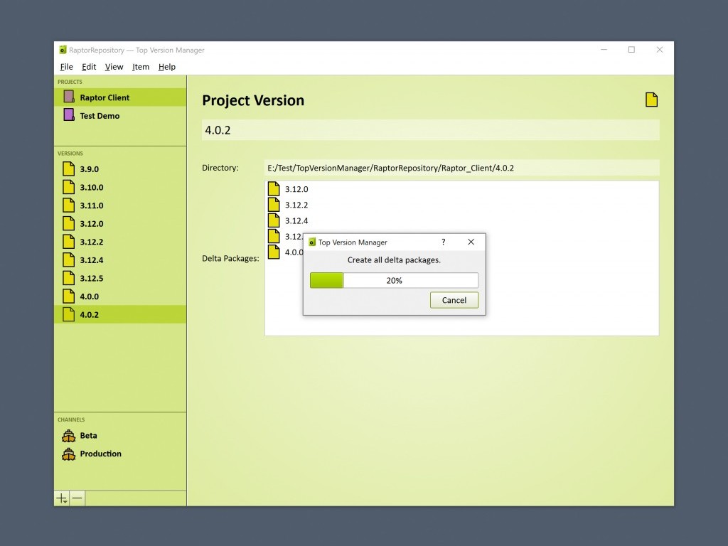 Mit Top Version halten Sie die Software auf Clients und Servern immer auf dem neusten Stand. Unsere einfache und verständliche Lösung unterstützt beliebig viele Projekte, unterschiedliche Kanäle und ein schnelles update mit Delta-Paketen.