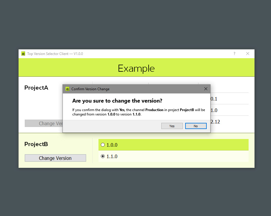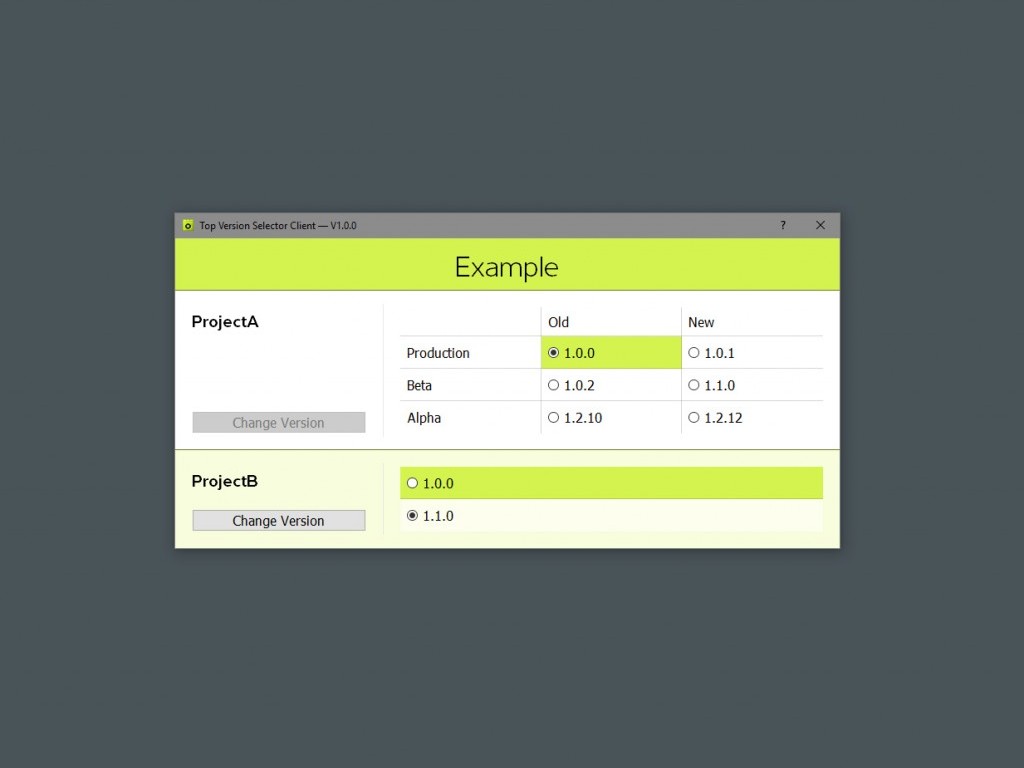 - Dezidiertes Selektions-Interface, womit Mitarbeiter ohne erhöhte Rechte einzelne Software Versionen umschalten können.